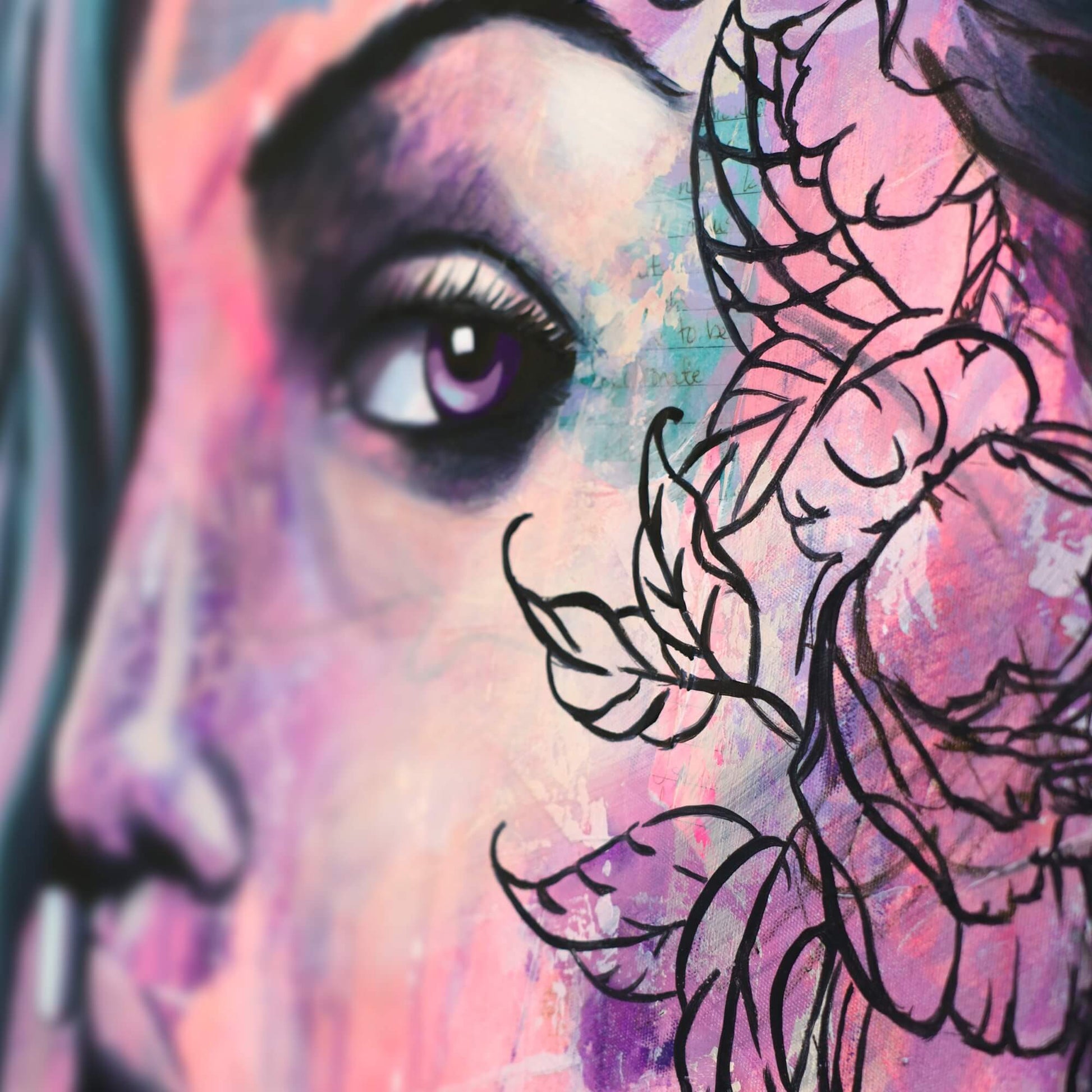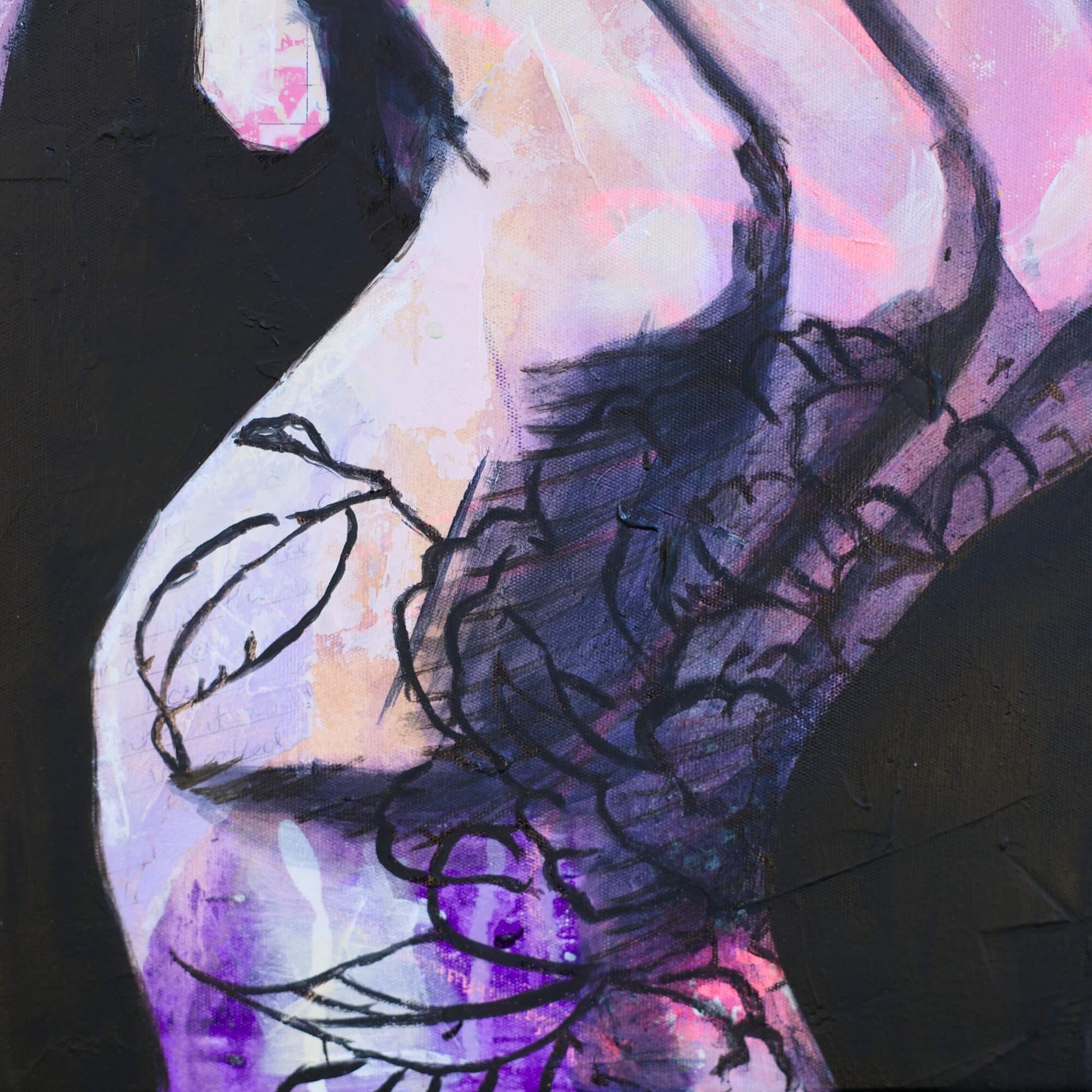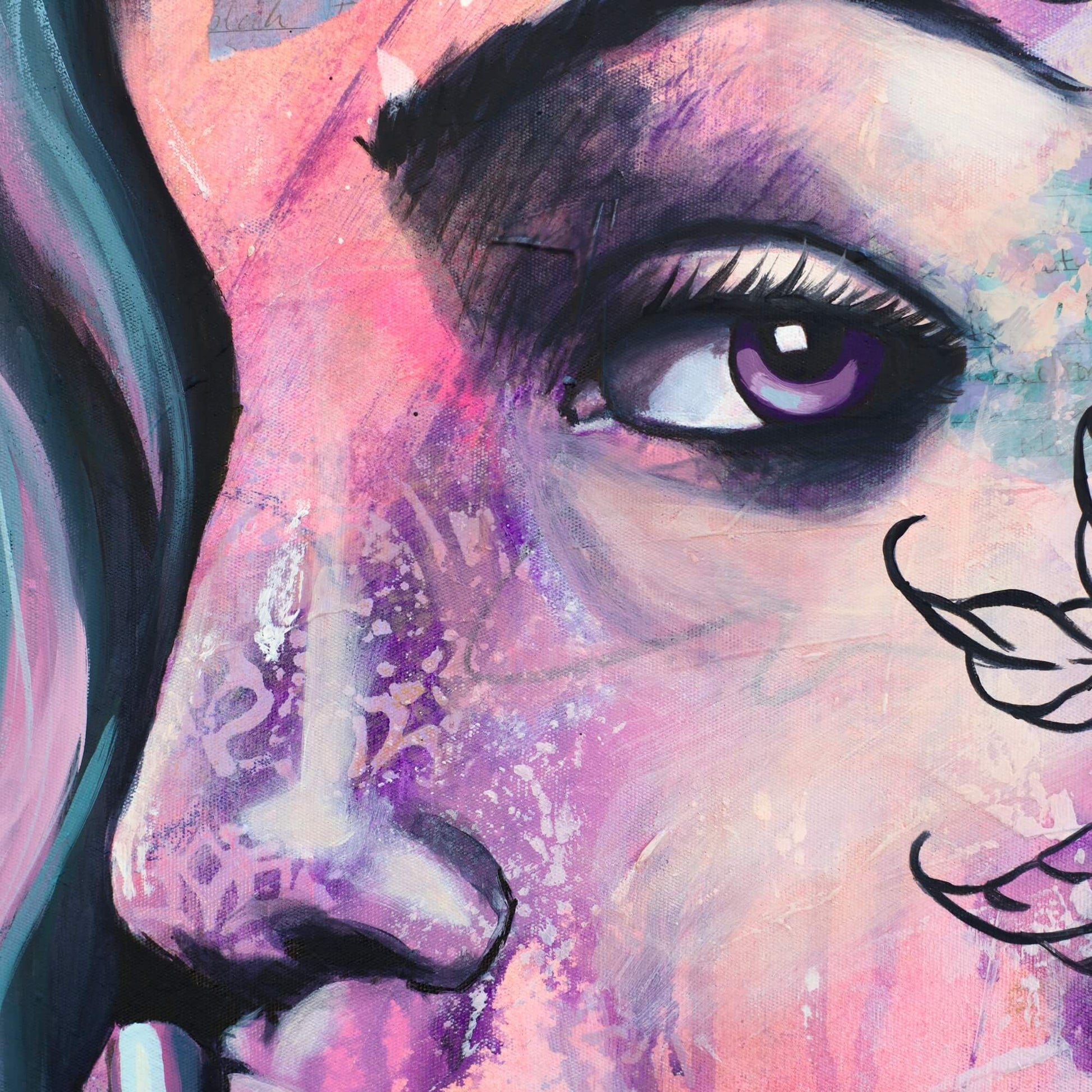 This original painting refuses softness where none is deserved, holding the truth of a woman who guards herself fiercely.