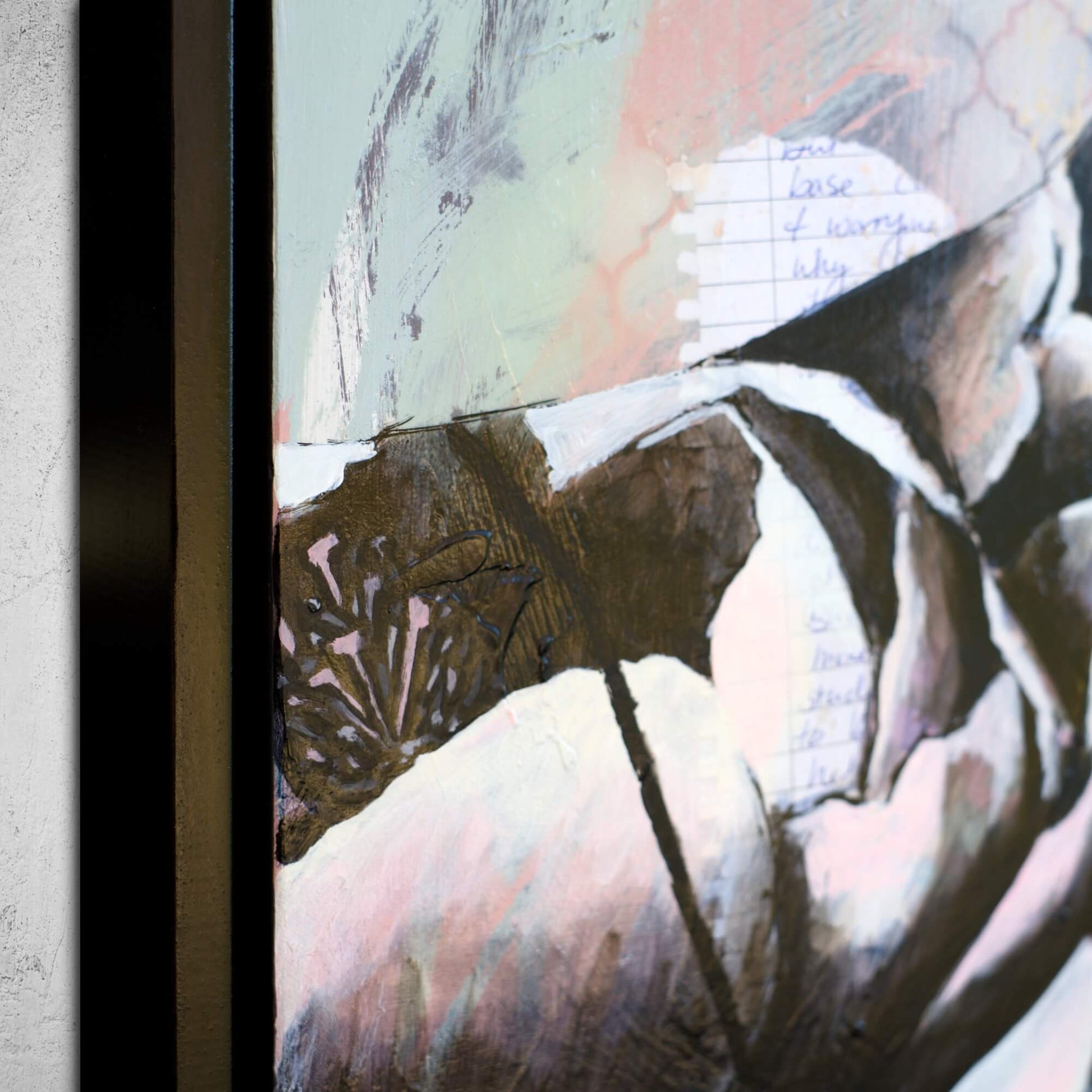 This original painting, In Bloom, is a celebration of self-possession and serenity during those quiet moments when we are alone and the stresses of the world fall away.